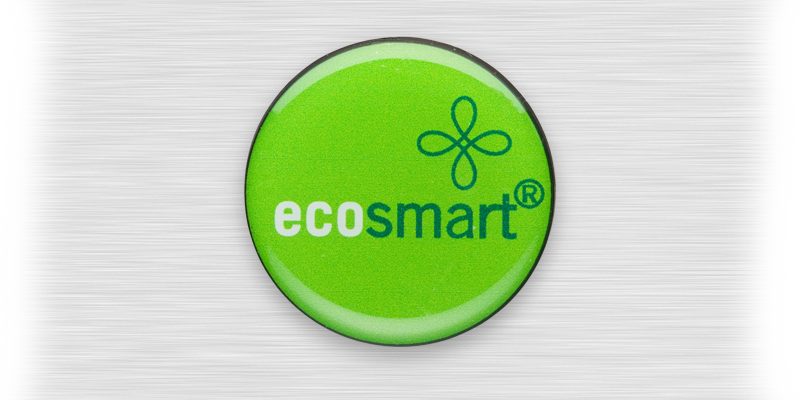 Kunststoff, glänzend verchromt, schwarz bedruckt, Oberflächenschutz mit Doming, Rückseite selbstklebend