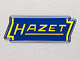 Schild Werkstatteinrichtung aus blauem ABS mit Doming, Outline silber glänzend, gelbe Bedruckung