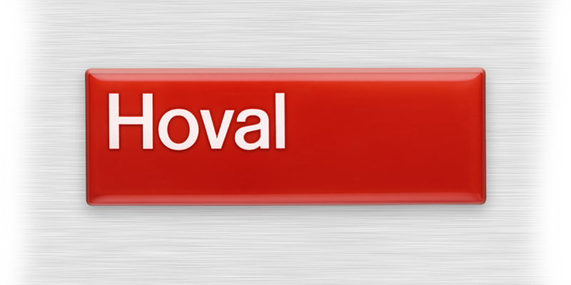 Heizungsschild aus rotem Luran mit Doming, weisse Bedruckung